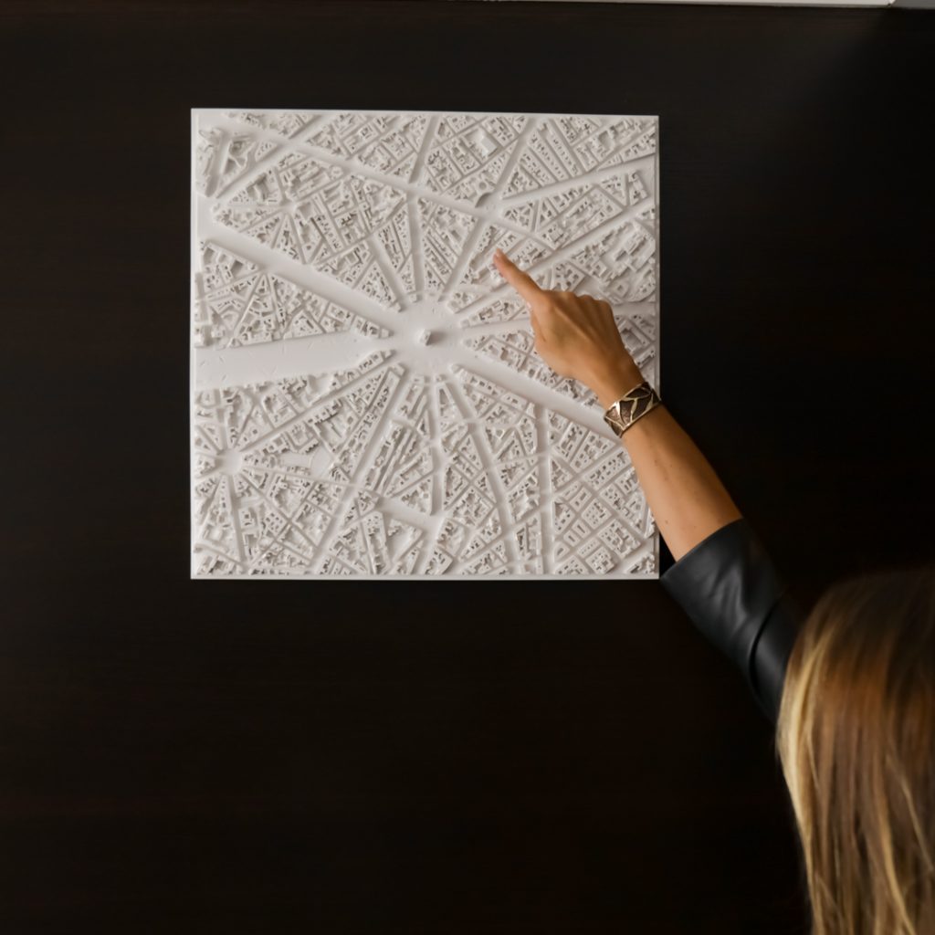 Le relief de la ville de Paris est centré avec la Place Charles de Gaulle (ancien nom : Place de l’Étoile) au milieu, où avec les Champs-Élysées et d’autres avenues forme une étoile de 12 avenues (Baron Haussmann), et qui croisent l’Arc de Triomphe. Le modèle couvre une superficie de près de 3 km2 (1 690 m x 1 690 m) et est conçu pour inclure la place des États-Unis au sud, la place Victor Hugo au sud-ouest, touche le parc Monceau au nord-est et dans le coin extrême (nord-est ouest) se trouve le gratte-ciel de la chaîne hôtelière Hyatt Regency Paris Etoile.